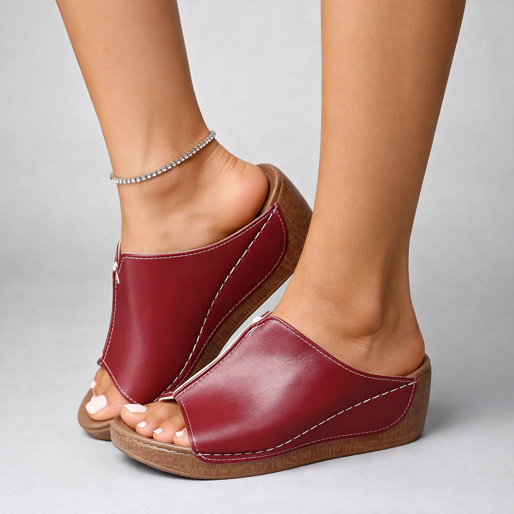 Crafted from smooth leather with a contoured open-toe design, the Serena Leather Platforms combine structure with everyday ease. A cushioned footbed and supportive wedge sole provide elevated height without compromising all-day comfort.